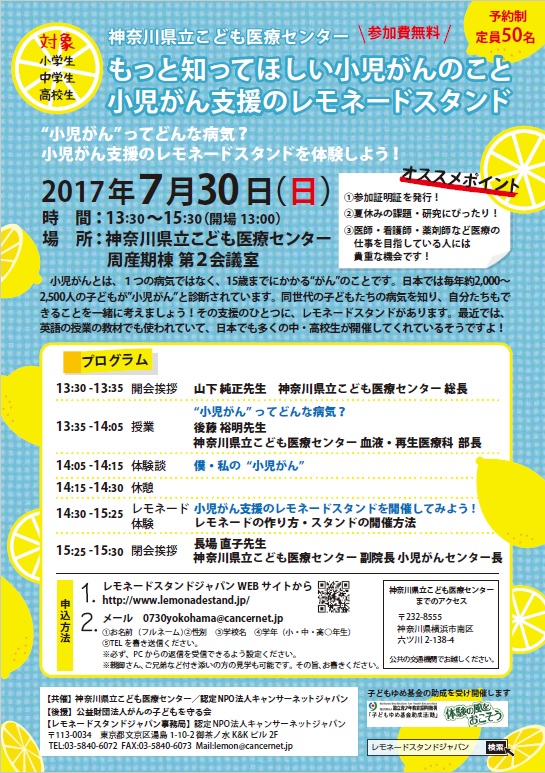 神奈川県立こども医療センター もっと知ってほしい小児がんのこと~小児がん支援のレモネードスタンド~