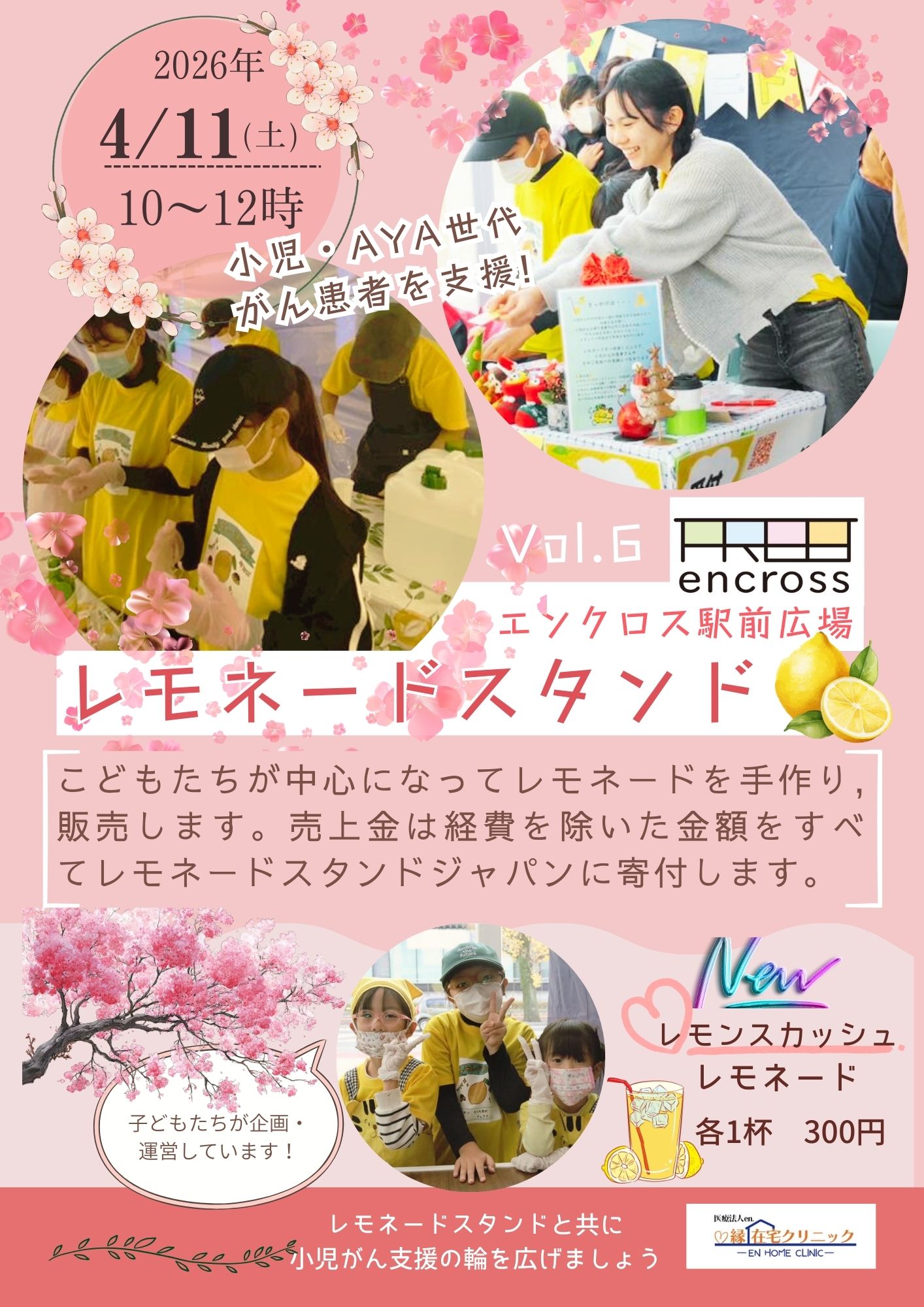 4/11(土)レモネードスタンド in エンクロスにてレモネードスタンド開催!