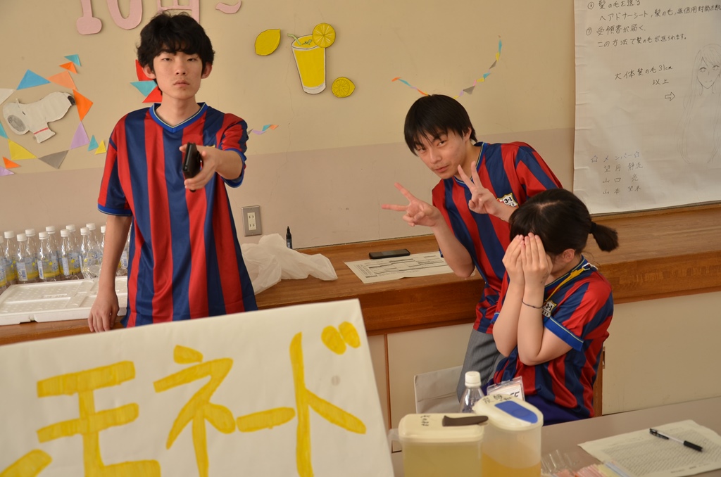 レモネードを提供しようと考えたとき、最初は模擬店としての審査に通らなかったため別の案を考え、このレモネードスタンドにたどり着きました。募金活動がスタートではありませんでしたが、文化祭を通して募金活動をさせていただき、貴重な体験ができました。