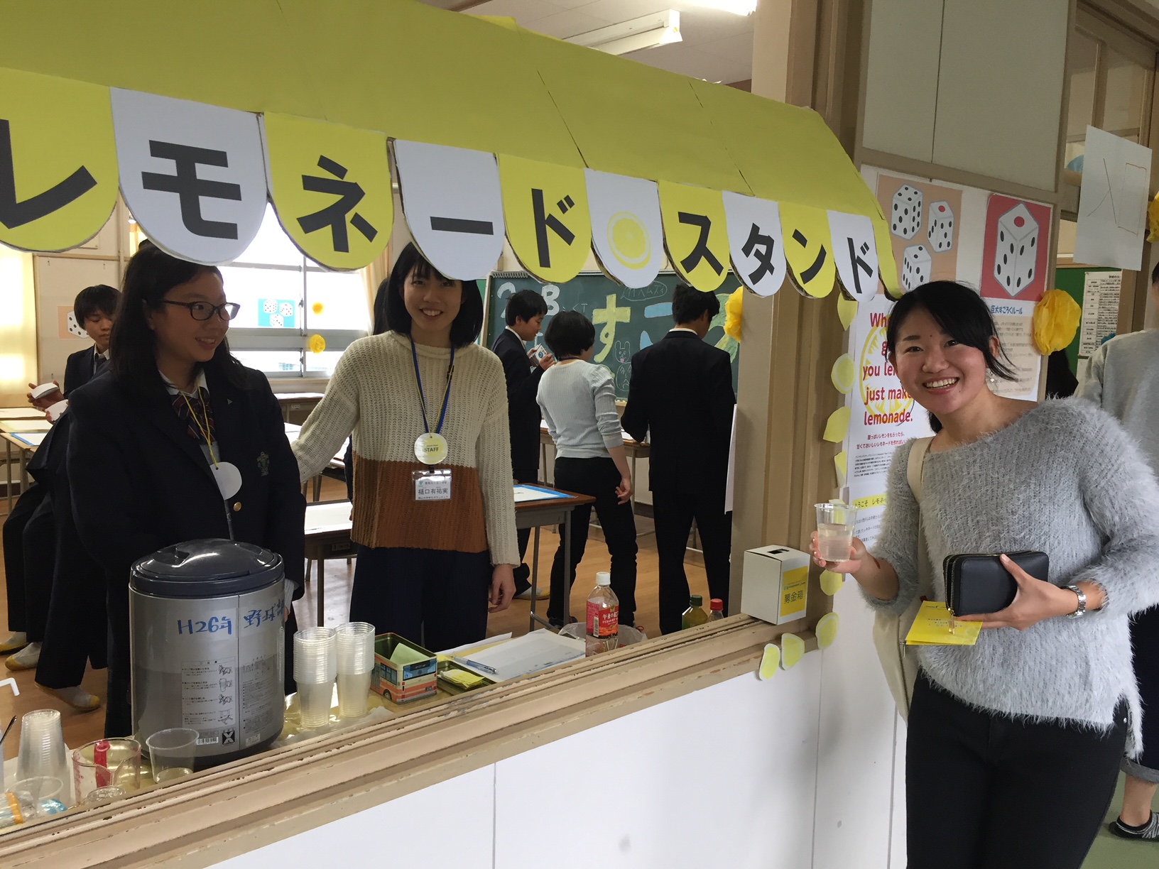 ひとりの生徒さんが東京に行った際レモネードスタンドの企画を知り、文化祭のクラス企画にどうかと提案されたのがきっかけとのことです。