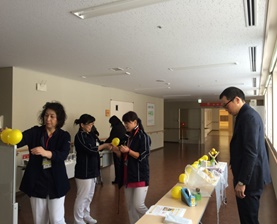 2018.1/13(土)山形県立こころの医療センター「第2回精神医療とパスを学ぶ in 鶴岡」にてレモネードスタンドを開催しました。飾り付けには、会場前を通りかかった入院加療をされておられる患者さんもお手伝いくださいました。
