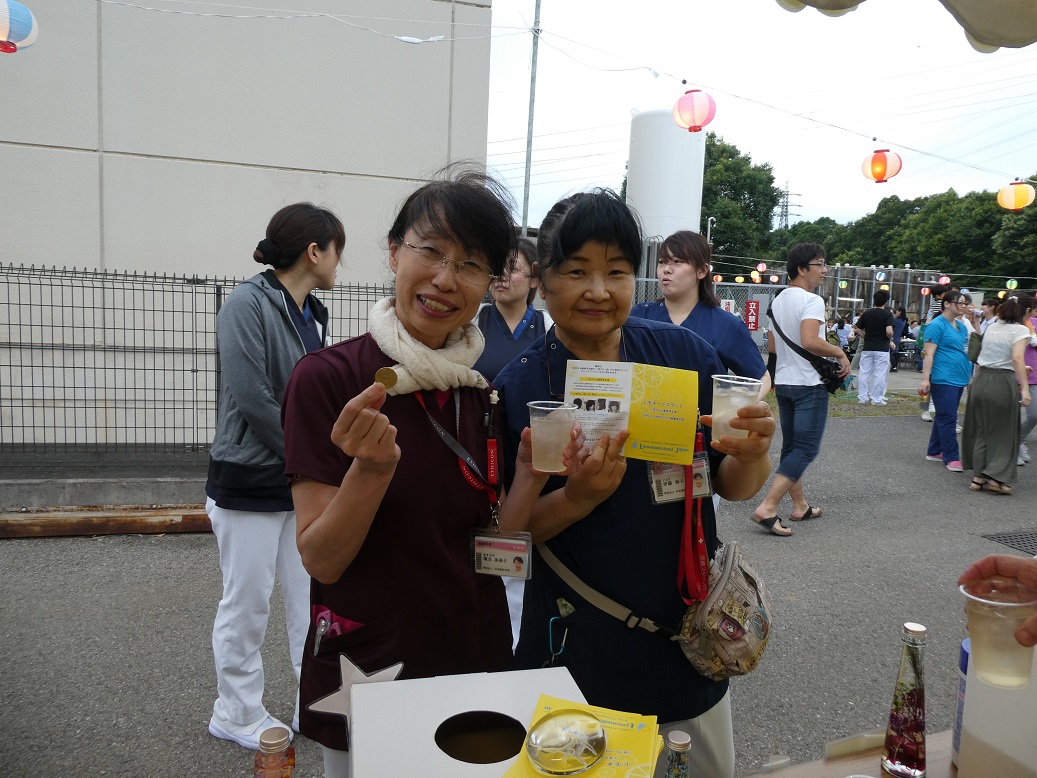 昨年に引き続き、今年も日本医科大学千葉北総病院の院内納涼祭にて、レモネードスタンドを開催させていただきました。事前に「小児がん支援のレモネードスタンド」を知ってもらうためにリーフレットを作成し、各部署へ配布したこともあって、当日は多くの方が足を運んでくださいました。今回の募金活動に賛同してくださった皆さまに感謝すると共に、今後も支援の輪が広がる手助けが出来れば幸いです。素敵な時間をありがとうございました。