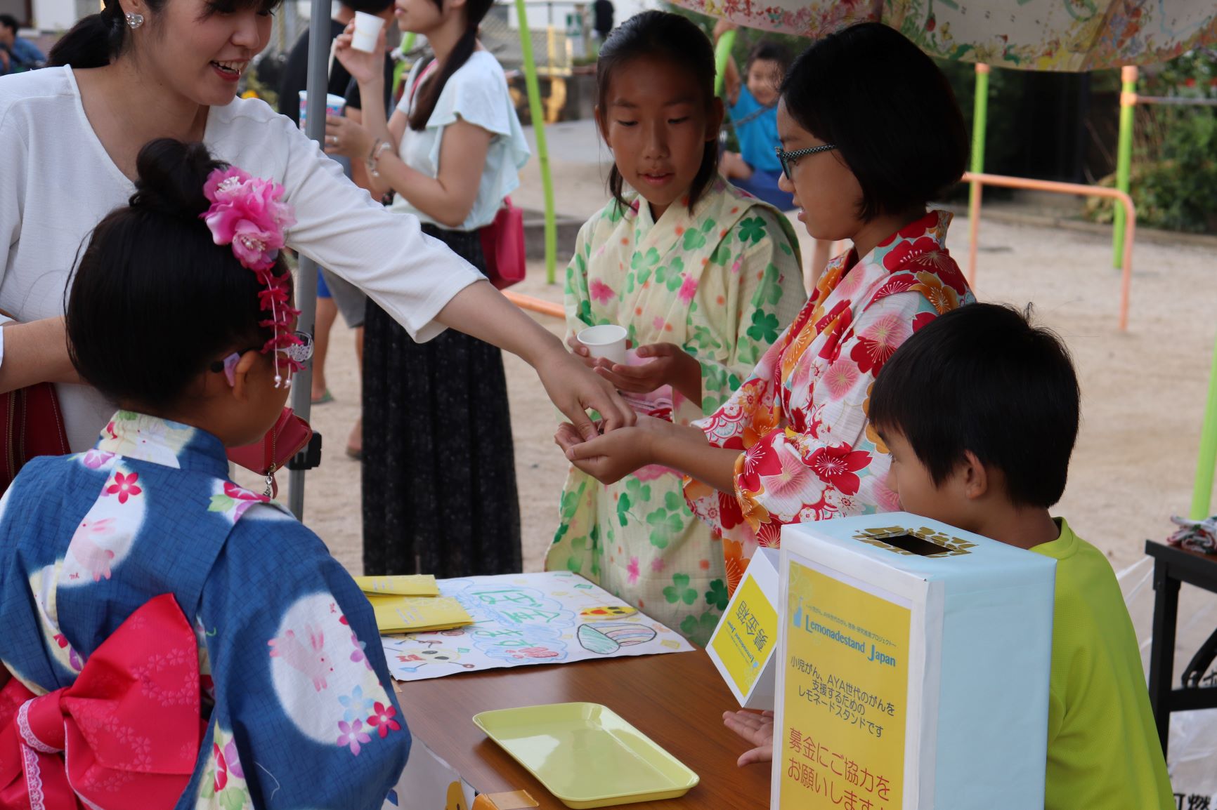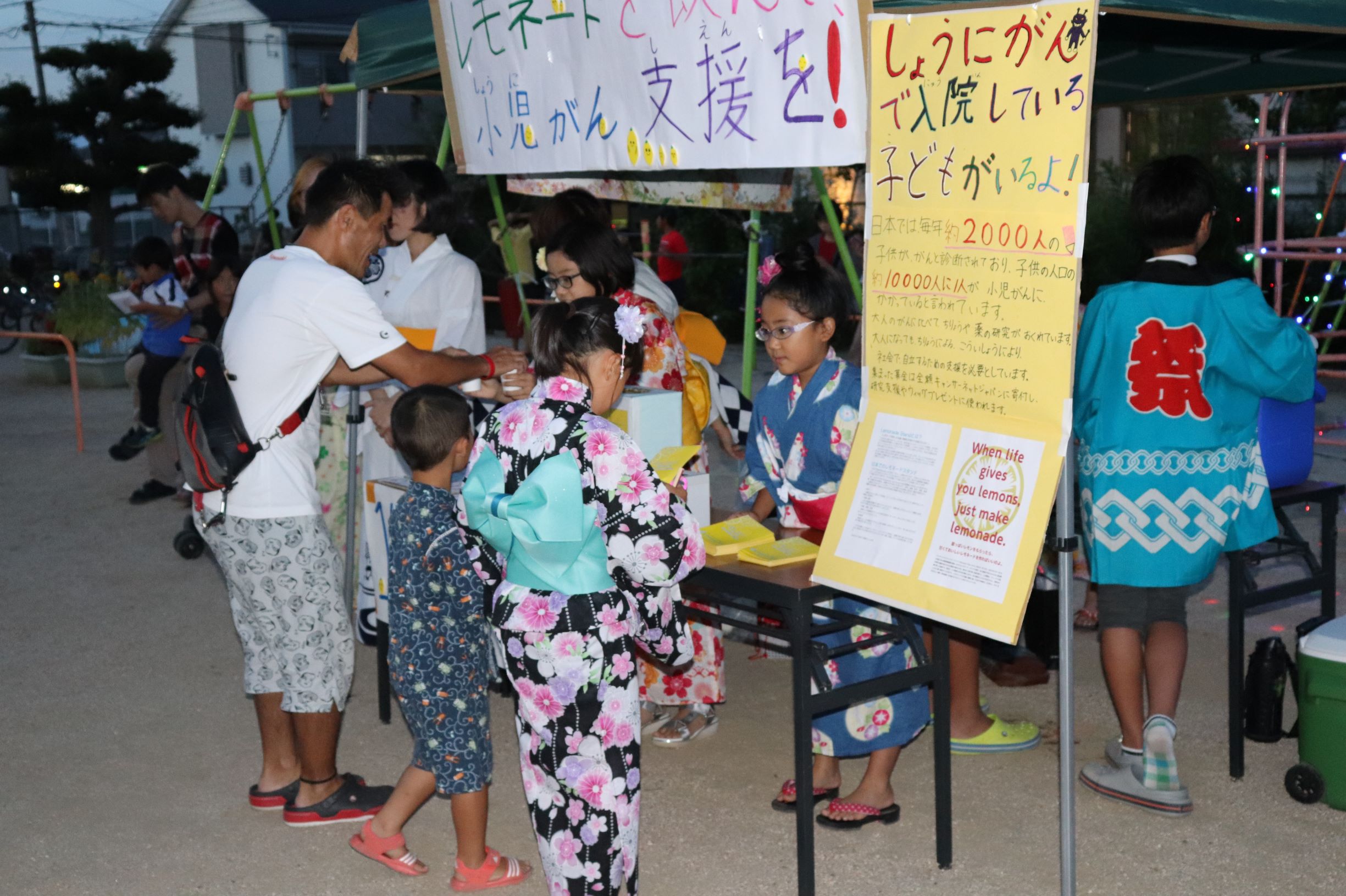 2018年8月18日(土)岡山市の新屋敷公園で開催された、第43回 新屋敷町盆踊り大会にて、町内の小学6年生有志とその弟妹さんがレモネードスタンドを開催してくれました!