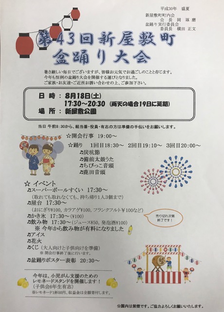 2018年8月18日(土) 第43回 新屋敷町盆踊り大会にて町内の小学6年生有志とその弟妹で開催!(岡山県)