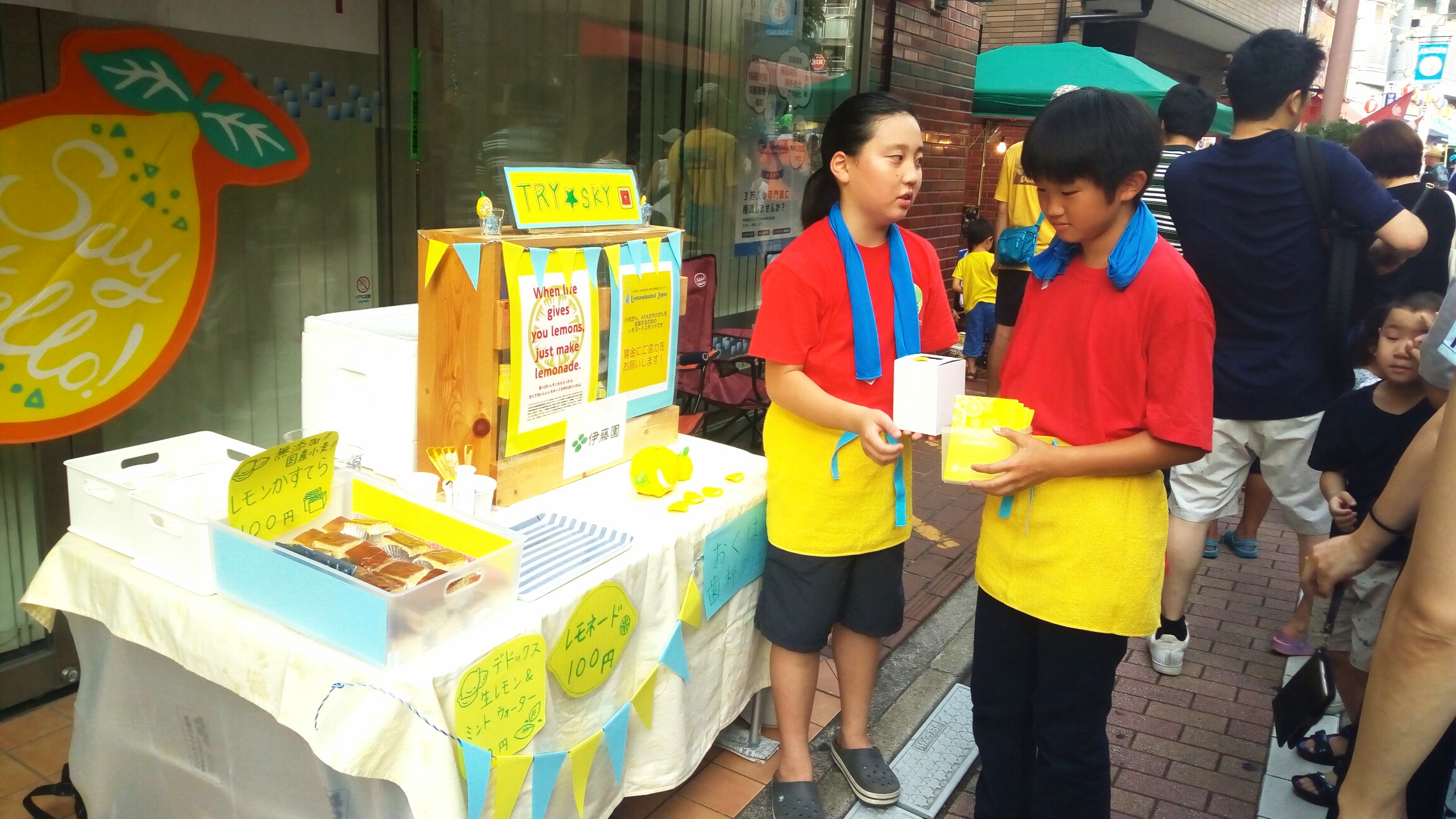 2018年8月4日(土)~5日(日)渋谷区幡ヶ谷六号坂通り商店街「納涼まつり」にてレモネードスタンドを開催してくださいました。